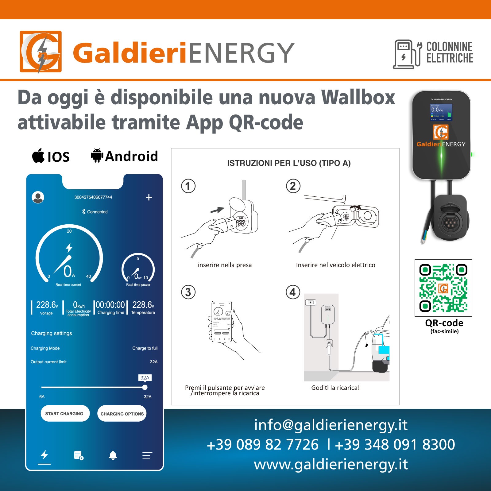 E’ già attiva l’App/Qr Code Galdieri Energy, utilizzabile per la gestione delle nostre colonnine Wallbox.